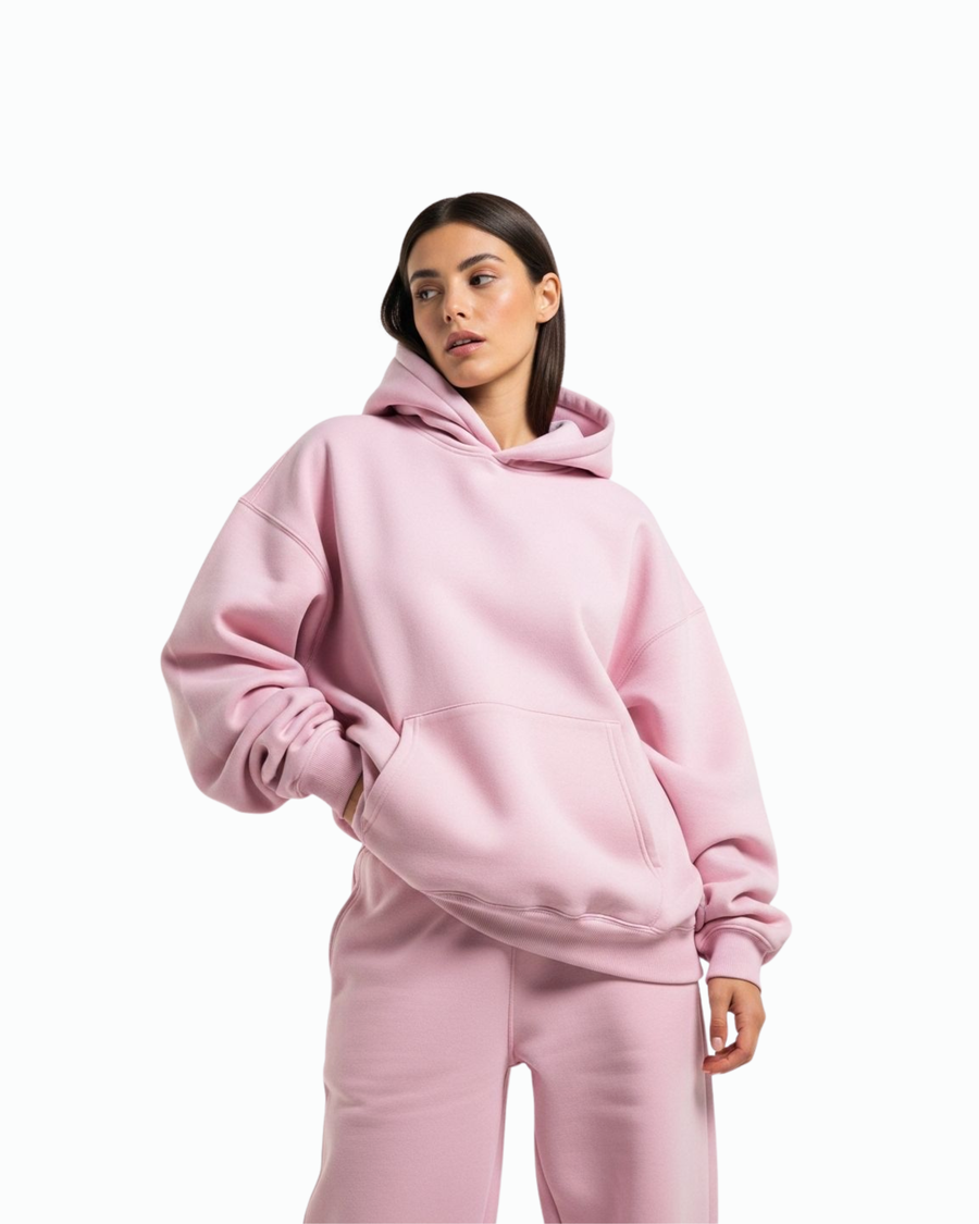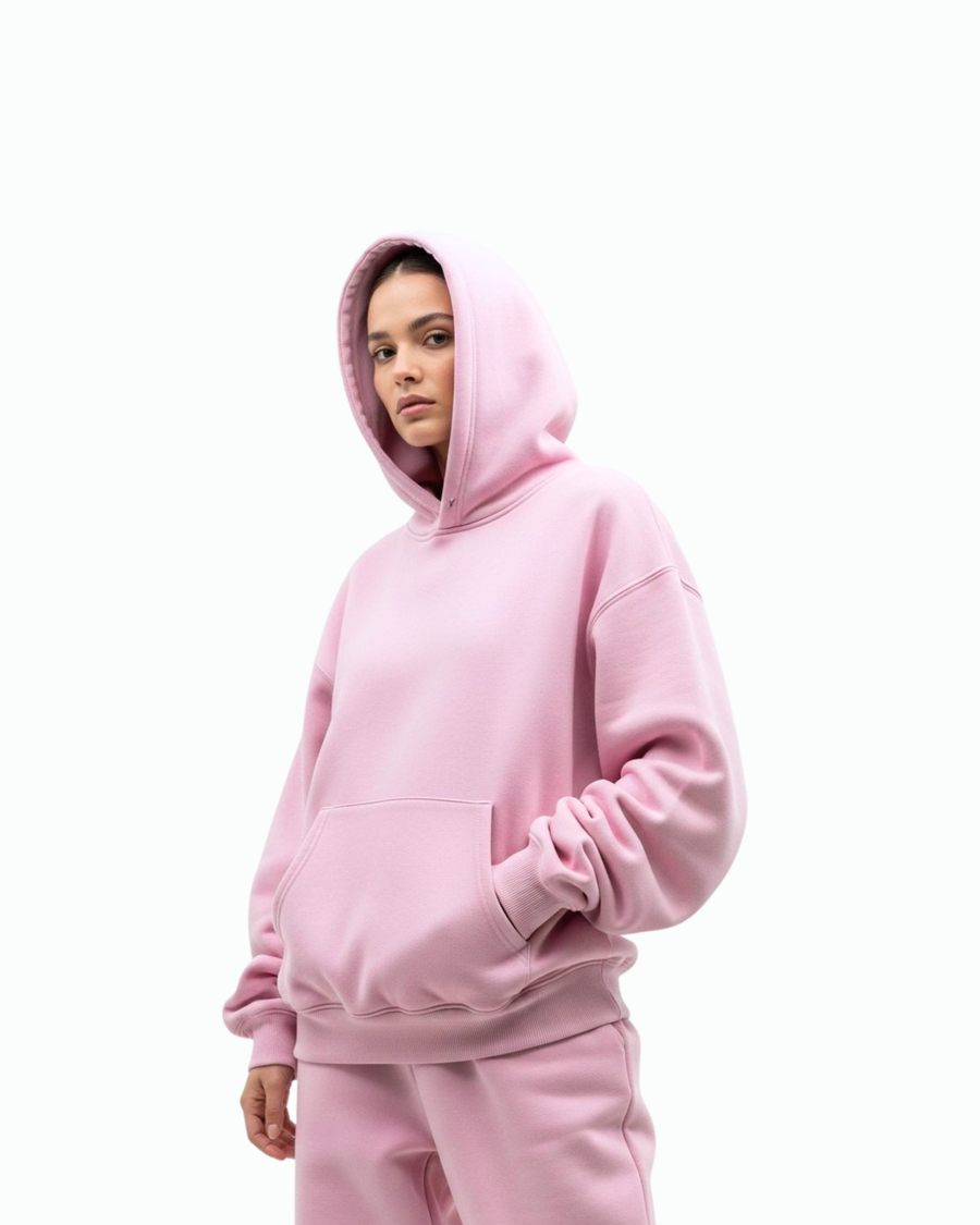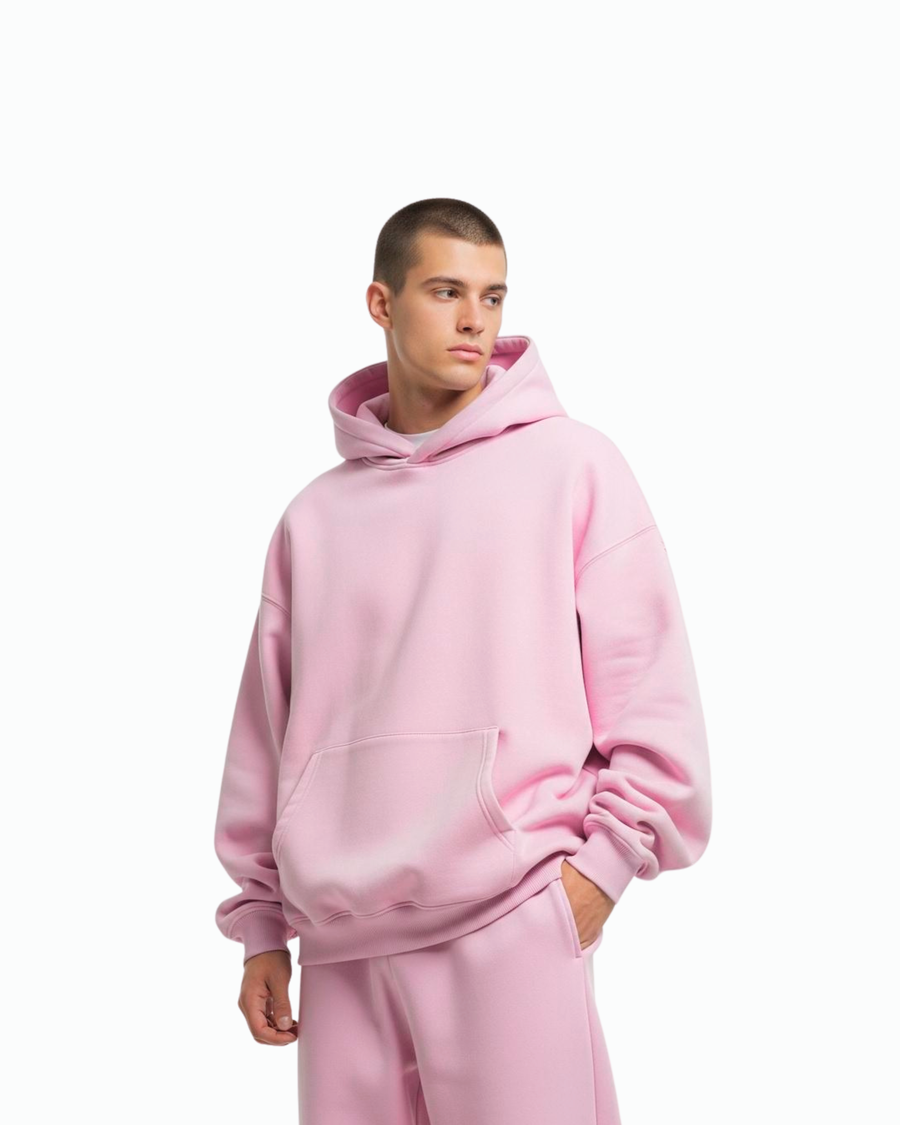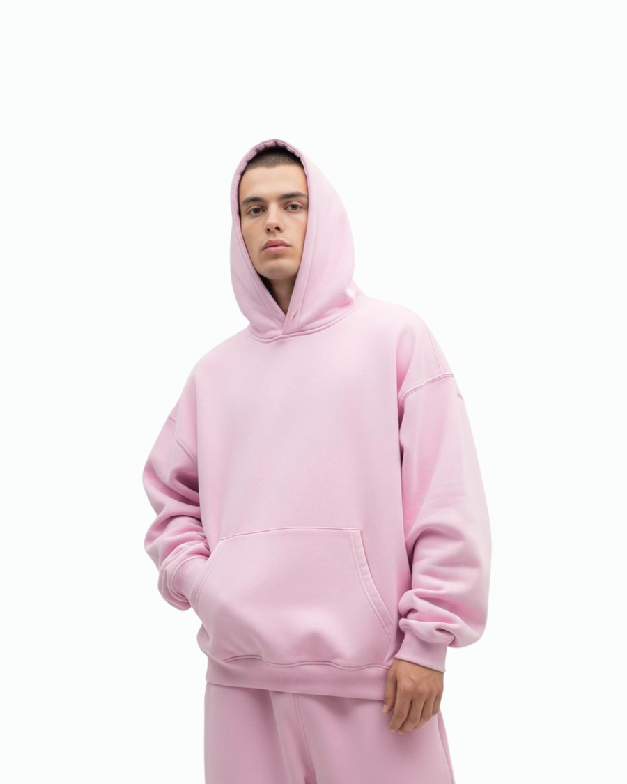 Pink boxy oversized hoodie made from 100% premium cotton. Designed for ultimate comfort, luxury, and minimal streetwear style — perfect for confident look