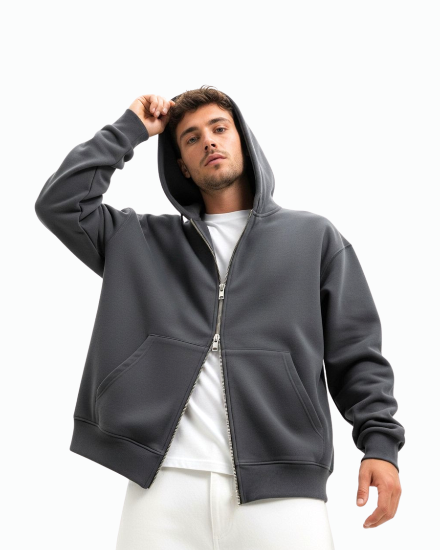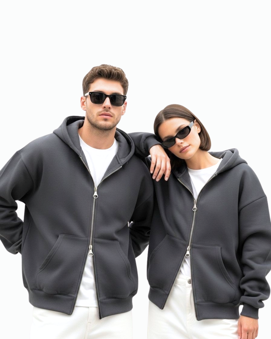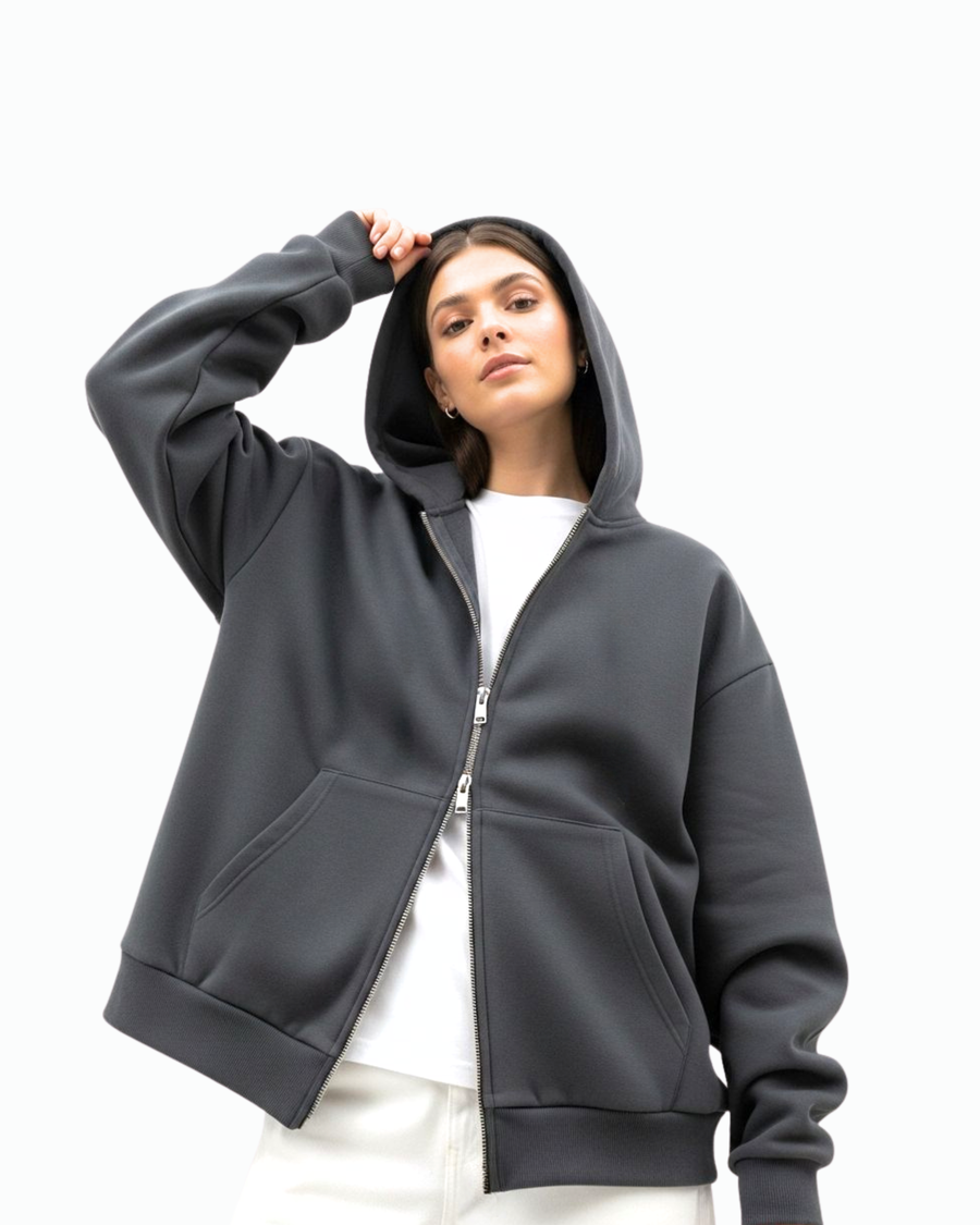 Oversized Gray zipper hoodie made from soft, 100% fabric. unisex with a comfortable fit, durable zipper — perfect for everyday casual and streetwear outfits.