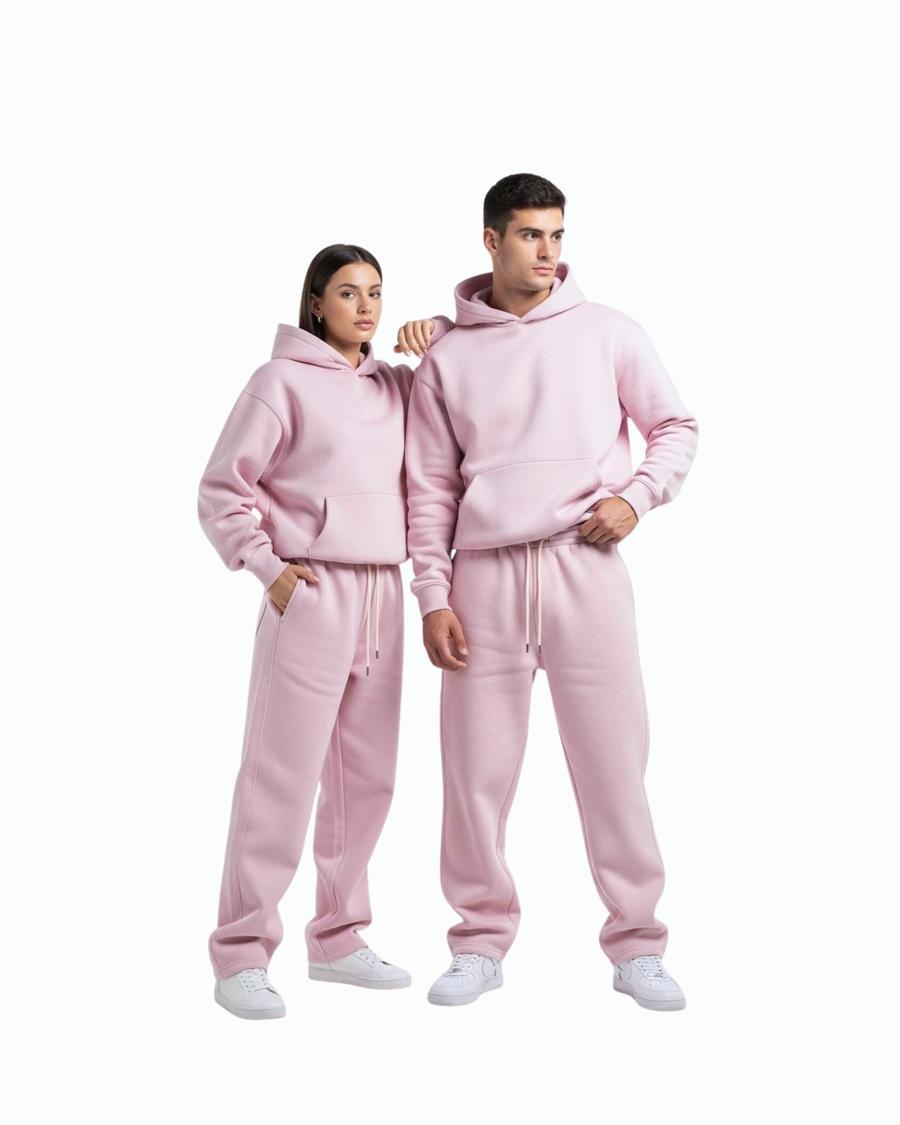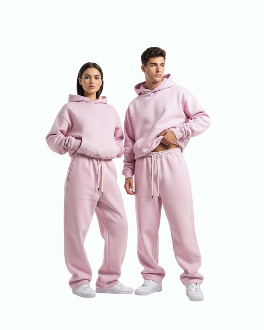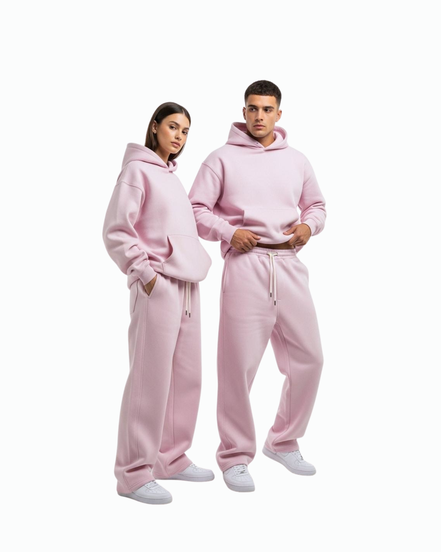 Discover the pink Oversized Hoodie & Sweatpants Set—premium 100% cotton fabric, unisex fit, perfect for winter comfort and streetwear style.
